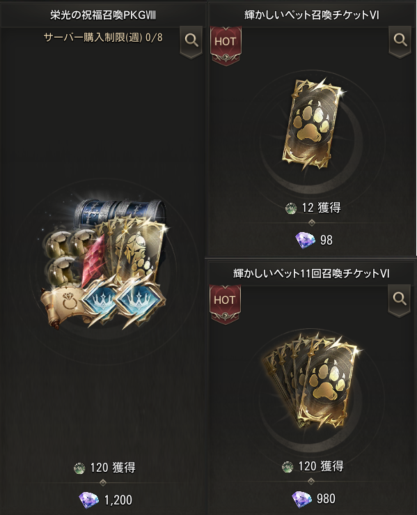 「[Hot Deal]合成サポート!ペットPKG」は一般サーバーでのみ販売されます。