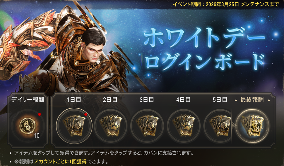 ・イベント期間中、1日1回報酬を獲得できます。